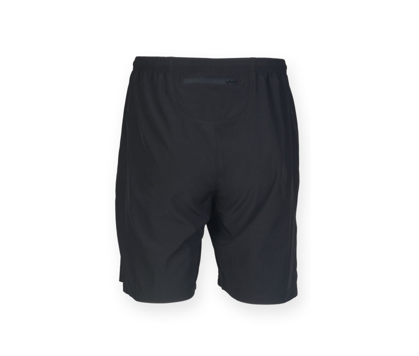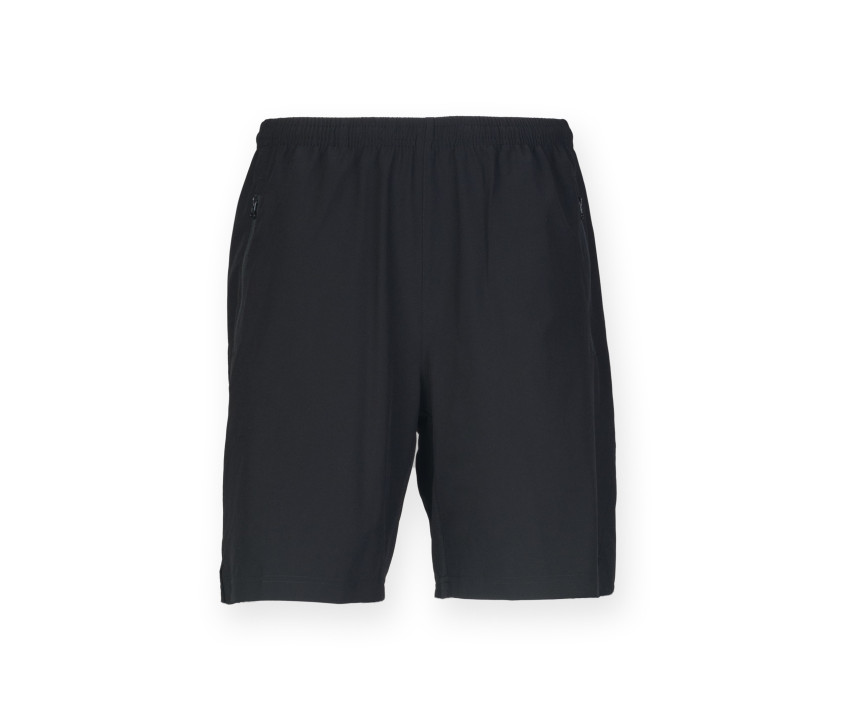 Short de sport - Taille élastiquée et ajustable par cordon. Non doublé. Poches sur les côtés zippées.