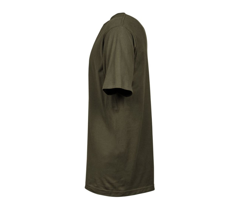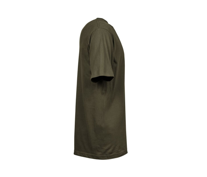 Tee-shirt homme - Coupe moderne. Col double avec élasthanne. Bande de propreté d'épaule à épaule. Lavé aux enzymes.