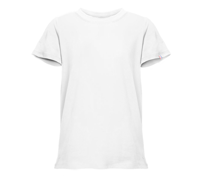 Tee-shirt bio origine France enfant - Coupe cintrée. Col rond. Pas d'étiquette de marque, seulement une puce de taille au col. Bande de propreté au col.