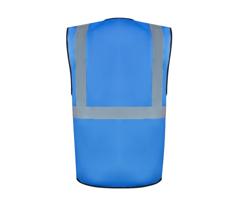 Certifié EN ISO 20471:2013/A1:2016 ; Orange certifié RIS-3279-TOM Iss 2 ; Neon Green & Neon Pink certifé EN 17353:2020 Type AB3; les autres couleurs EN 17353:2020 Type B3. Bande horizontale réfléchissante de 5cm. 2 bandes réfléchissantes de 5cm de large sur les épaules. Fermeture zippée. 2 poches avec rabats et fermeture Velcro. Multifonctionnel : poche pour carte d'identité (9,5cm x 6,5cm), grande poche pour téléphone, porte-stylos. Propriétés réfléchissantes garanties selon la norme EN pour 25 lavages à 40°C.