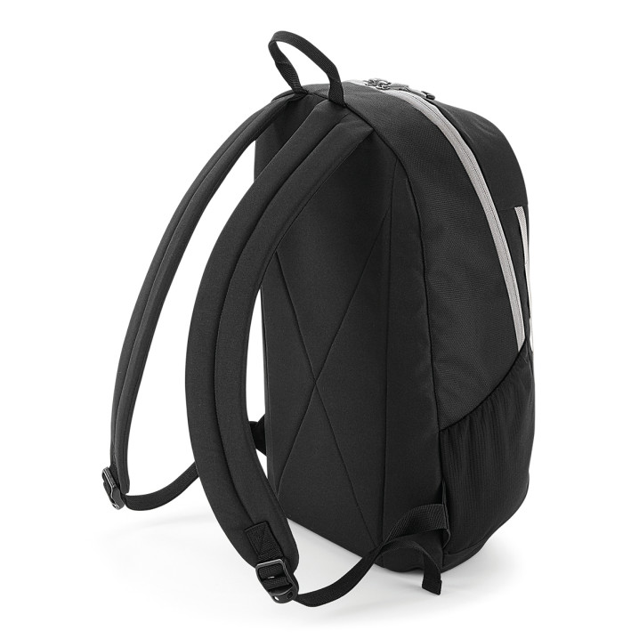 Étiquette détachable. 2 poches intérieures dont 1 zippée. Poches filet élastiquées sur les côtés. Dos matelassé. Détails réfléchissants. Surface d'impression : 17x25cm.