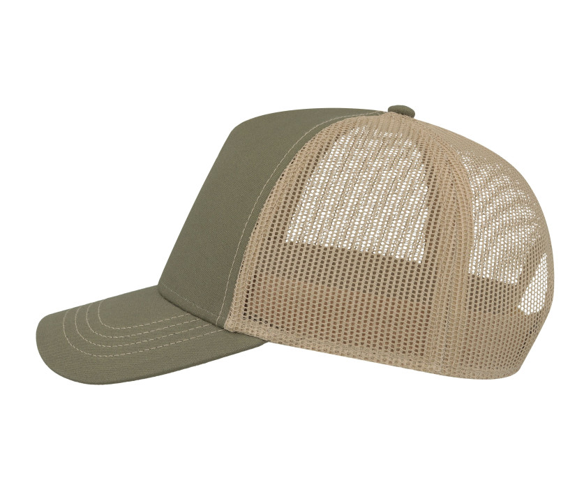 Casquette Rapper en coton canvas - 5 panneaux. Visière préformée. Dos en filet.