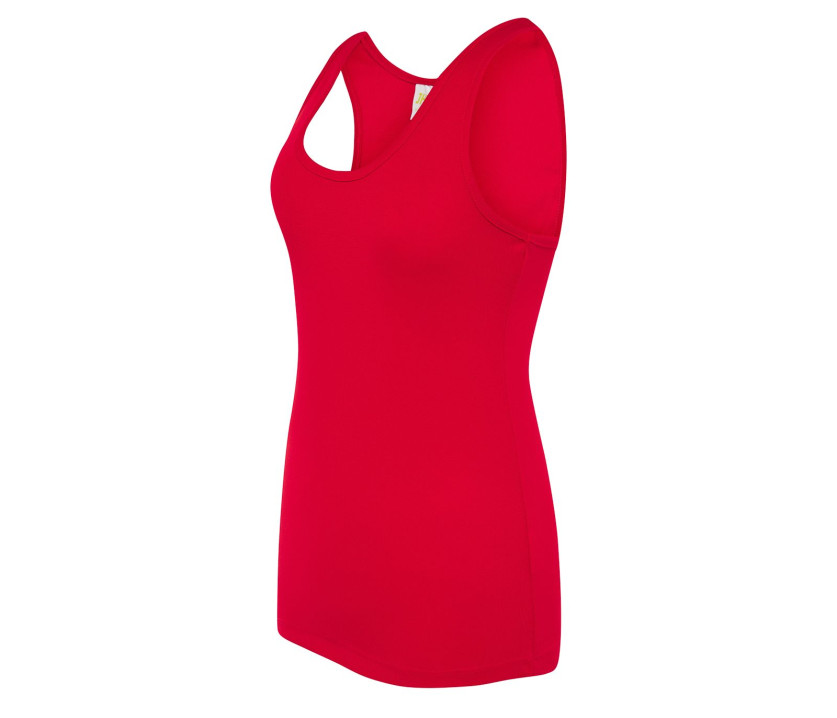 Débardeur de sport femme Aruba - Dos nageur. Étiquette amovible. Coupe ajustée. Stock en conversion vers du 100% polyester recyclé.