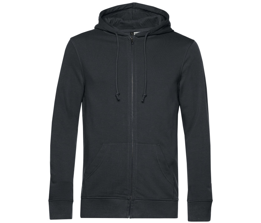 Sweat-shirt zippé à capuche, organique ou organique en conversion et au design tendance. Coutures latérales pour une coupe parfaitement adaptée aux silhouettes masculines. Sans étiquette de marque. Bande de propreté en chevrons. Fermeture Éclair métallique couverte. Capuche doublée avec cordons. 100% coton à l’extérieur. French Terry: intérieur non gratté. Tissu résistant et toucher ultra-doux.