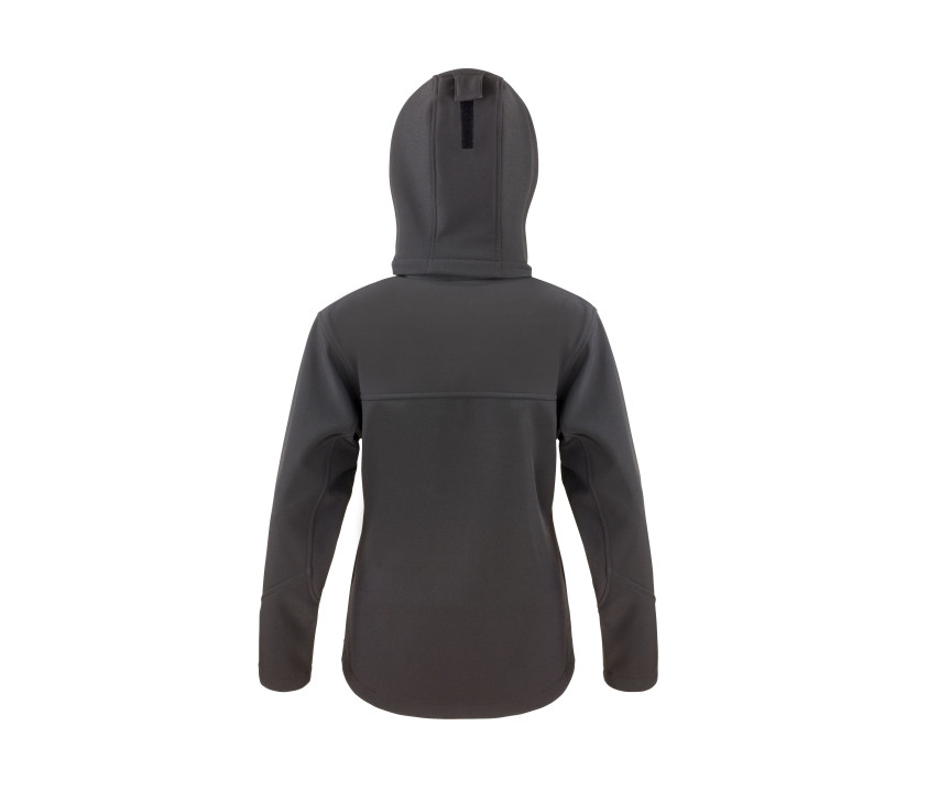 Veste Softshell femme à capuche - Poches zippées avant et poitrine. Capuche détachable et ajustable. Membrane intermédiaire imperméable 8000mm, coupe-vent et respirant 1000g.